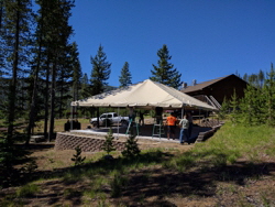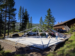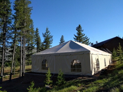In early 2017, we embarked on an exciting improvement project to enhance our facilities for guests. Beside our main lodge, we cleared and leveled a new space, poured a solid concrete slab, and set up a large temporary meeting tent. This tent quickly became a favorite gathering place for campers, offering a comfortable setting for group activities, worship services, and special events. For several seasons, it served us well, providing a versatile space that met the needs of our community.